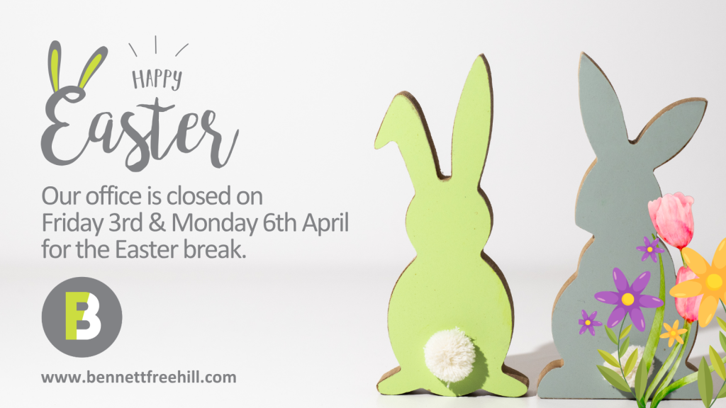 The office is closed on Friday 3rd and Monday 6th April for the Easter break. Happy Easter from all the Bennett Freehill team!
