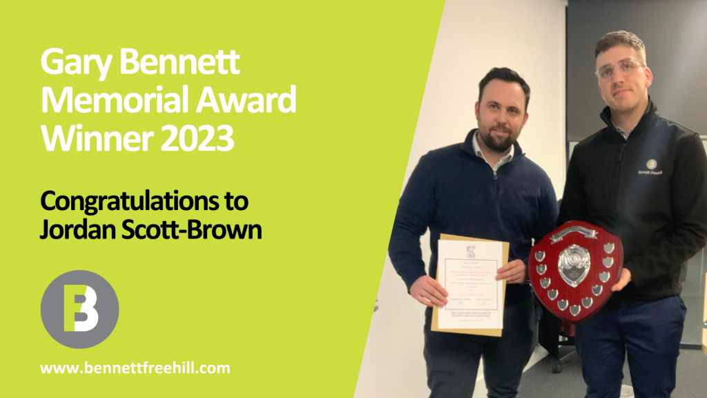 Congratulations to Jordan Scott-Brown who was awarded the Gary Bennett Memorial Award for the Best Final Year Design Project 2022/2023. Nathan McGregor, BIM Manager at Bennett Freehill, presented the award to Jordan at the Ulster University 22/23 Student Prize-giving event on Thursday 1 February 2024. This award is presented in honour of our founding Partner […]